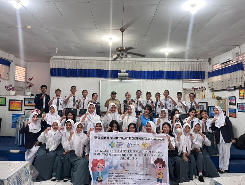 Palu, 06 Mei 2024. Tim Pengabdian Masyarakat dari Poltekkes Kemenkes Palu yang terdiri dari : , Helena Pangaribuan,S.Kep,Ns.,M.Kep (Ketua Tim), Baiq Emy Nurmalisa, S.Kep,Ns.,M.Kep, Arifuddin,S.ST.,M.Kes, baru saja menyelesaikan kegiatan edukasi dan deteksi dini kesehatan mental remaja di SMA Negeri 3 Palu, Kelurahan Birobuli Selatan Kecamatan Palu Selatan, dengan surat tugas tertanggal 06, 07 Mei tahun 2024 yang bertujuan untuk melihat/mengetahui kesehatan mental remaja di SMAN 3 Palu .
