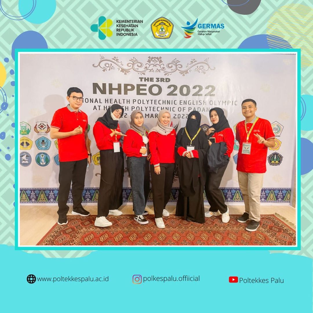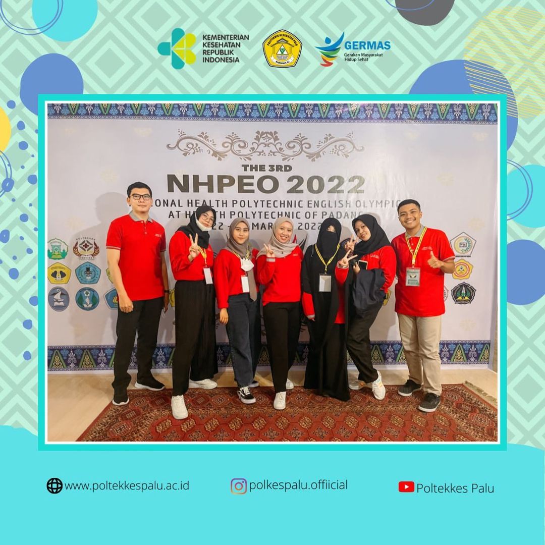 Terima kasih diucapkan kepada seluruh Tim Poltekkes Kemenkes Palu di ajang National Health Polytechnic English Olympic (NHPEO) 2022 yang diselenggarakan di Poltekkes Kemenkes Padang.