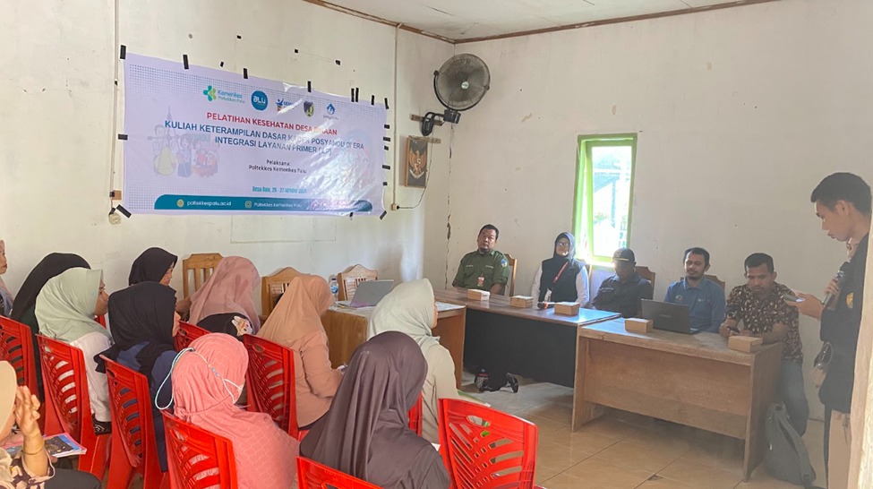 Bale, Tanatovea, Kabupaten Donggala — Pada tanggal [26 – 27 Oktober 2024], telah berlangsung Kuliah Keterampilan Kader Posyandu di Desa Bale, Kecamatan Tanatovea, Kabupaten Donggala. Acara ini dihadiri oleh berbagai pihak penting dan resmi dibuka oleh Kepala Desa Bale, Bapak Adam. Kegiatan ini diselenggarakan oleh Pusat Penelitian dan Pengabdian kepada Masyarakat (PPM) Poltekkes Kemenkes Palu sebagai bentuk komitmen dalam meningkatkan kompetensi kader Posyandu di wilayah setempat.