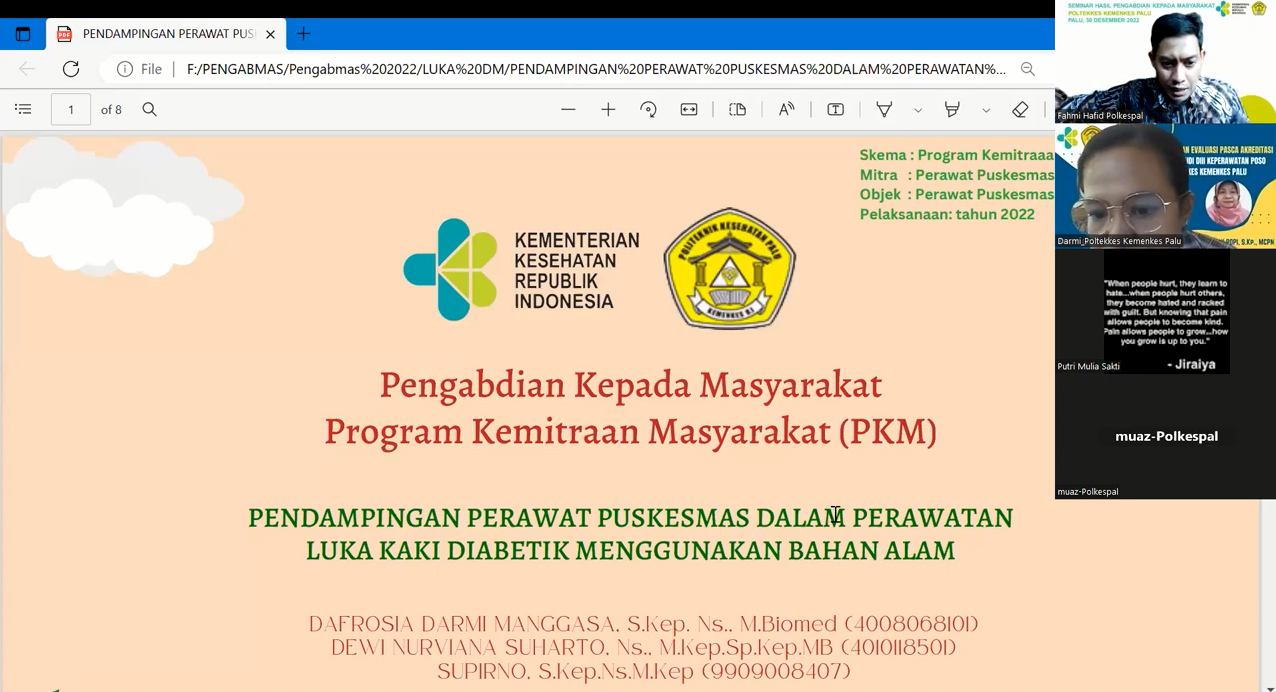 Video Seminar Hasil Pengabdian Masyarakat Poltekkes Kemenkes Palu Tahun 2022 (sesi 4-6)