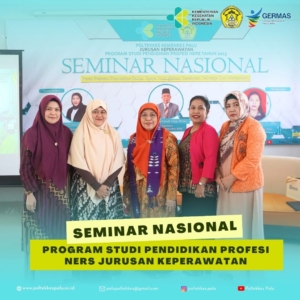 Program Studi Pendidikan Profesi NERS Jurusan Keperawatan telah melaksanakan Seminar Nasional dengan mengangkat Tema “Peran Perawat Komunitas dalam Upaya Peningkatan Kesehatan Keluarga dan Masyarakat”. Hadir sebagai Narasumber yakni Ibu Prof.Dra. Junaiti Sahar,S.Kp.,M.App.,Sc.,Ph.D yang merupakan Ketua Program Studi Pasca Sarjana Fakultas Ilmu Keperawatan Universitas Indonesia. Kegiatan ini dibuka oleh Wakil Direktur III Ibu Sumiaty, SST.,MPH dan diikuti oleh Kaprodi, dosen serta mahasiswa Prodi Pendidikan Profesi NERS.