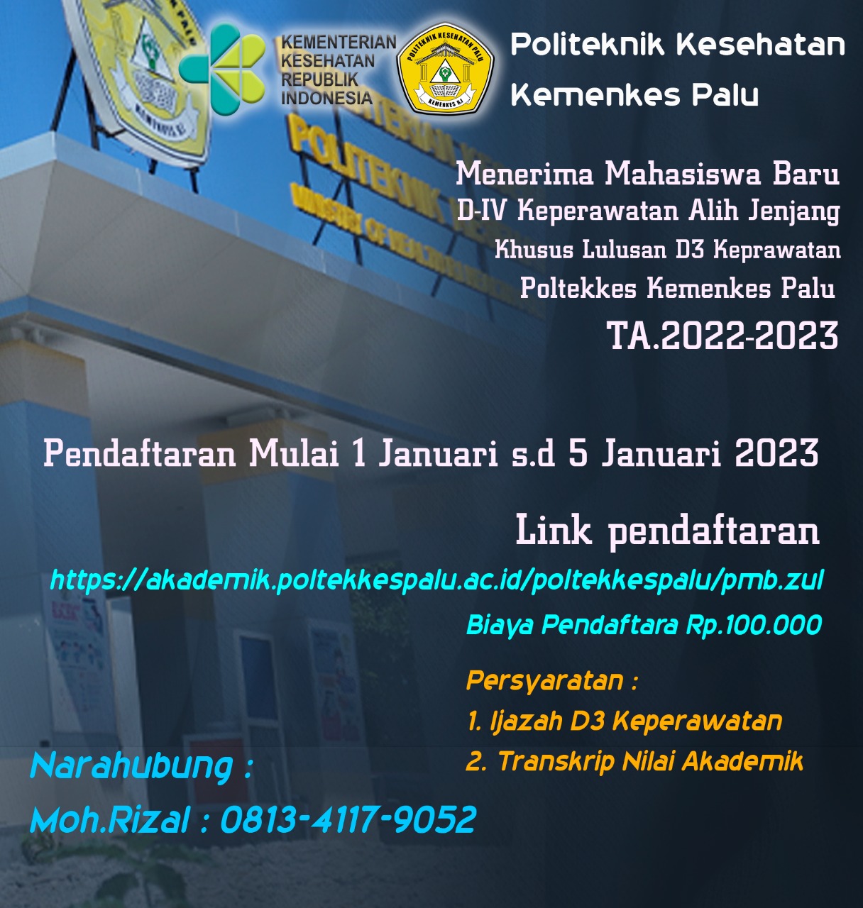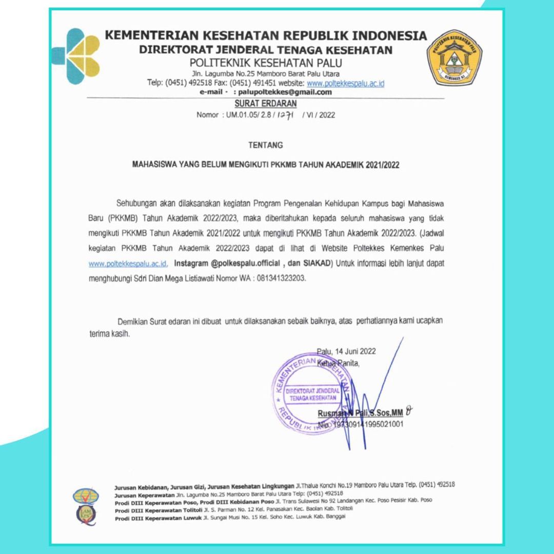 Infromasi Pendaftaran Penerimaan Mahasiswa Baru Poltekkes Kemenkes Palu Jalur PMDP (Penelusuran Minat dan Prestasi) Tahun Akademik 2022/2023