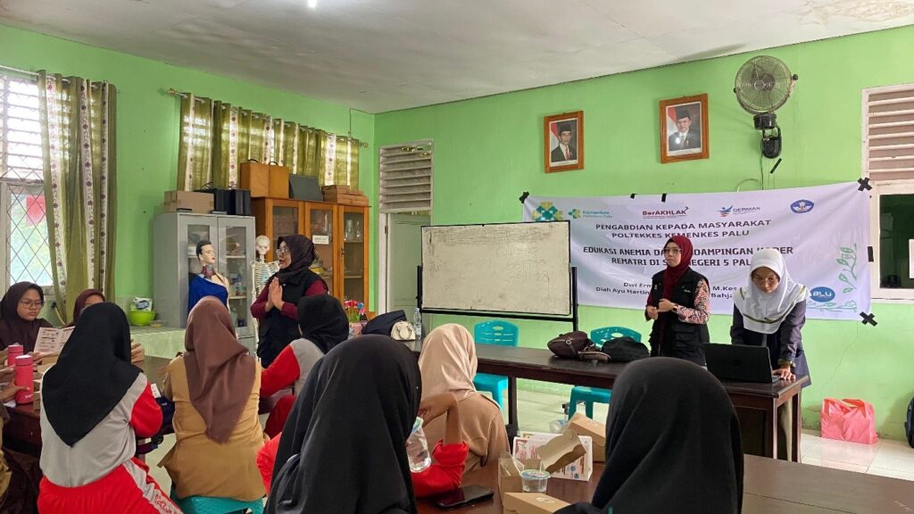 Palu, 7 Juni 2024 – Tim Pengabdian Masyarakat dari Jurusan Gizi Poltekkes Palu menyelenggarakan kegiatan bertajuk “Edukasi Anemia dan Pendampingan Kader Remaja Putri Bebas Anemia” di SMA Negeri 5 Palu. Kegiatan ini dimulai secara luring pada hari Jumat, 7 Juni 2024, dan akan dilanjutkan dengan pelatihan daring melalui WhatsApp Chat selama bulan Juni 2024.