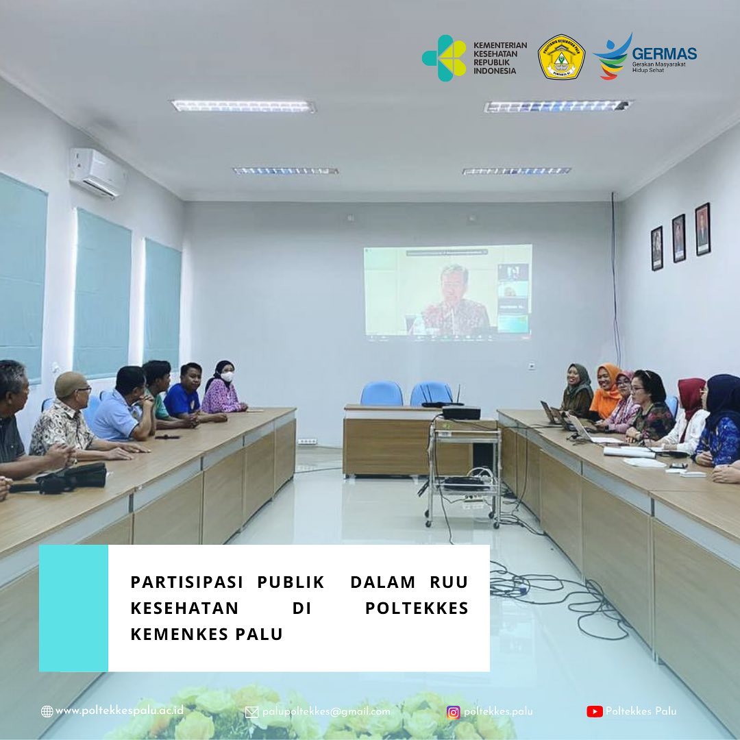 Dalam rangka partisipasi publik pada Rancanagan Undang-undang Kesehatan, Civitas akademika Poltekkes Kemenkes Palu bersama-sama turut mengikuti kegiatan tersebut secara daring di ruang Rapat Poltekkes Kemenkes Palu.