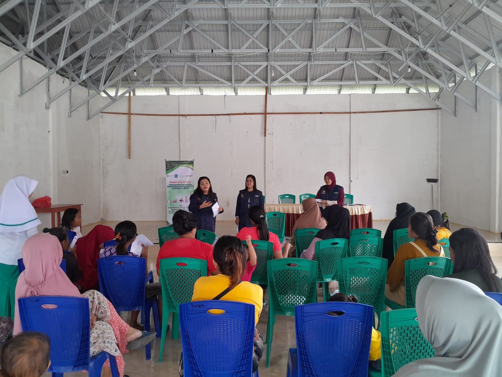 Masyarakat yang hadir sangat antusias dengan kegiatan pengabdian ini. Hal ini terlihat ketika masyarakat berlomba-lomba untuk mencoba memberikan stimulasi dan melakukan pemantauan perkembangan kepada anak.