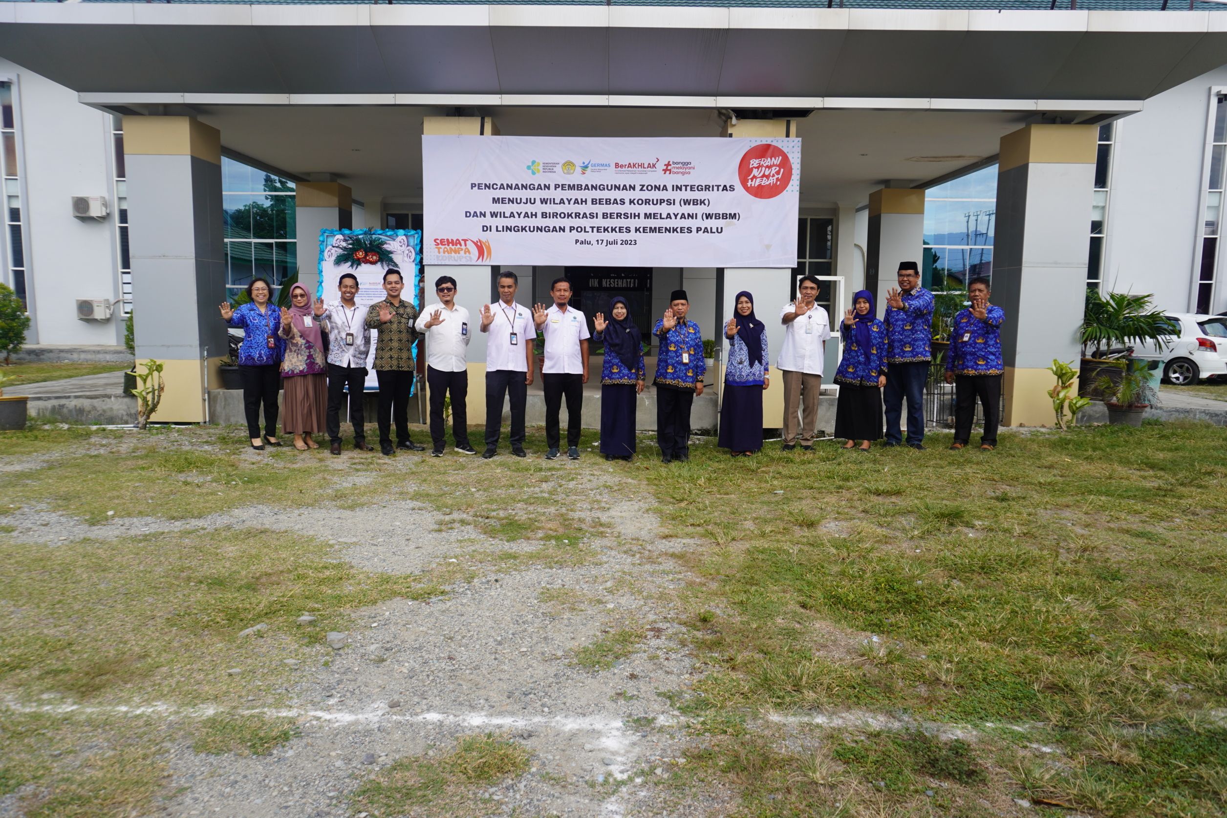 Senin, 17 Juli 2023 Poltekkes Menyelenggarakan pencanangan pembangunan zona integritas Poltekkes Kemenkes Palu tahun 2023. Pada kegiatan ini dihadiri oleh BPKP Sulteng, Kanwil Djpb Sulteng, KKPN Palu, KPKNL Sulteng, Bank BSI dan BNI. Pada sambutan Direktur Poltekkes Kemenkes Palu Mengatakan bahwa Pencanangan zona integritas Polkespalu menuju WBK dan WBBM merupakan langkah awal dalam mewujudkan birokrasi demokrasi yang bersih menuju BLU. Rangkaian acara dimulai dengan upacara bendera yang bertepatan dengan peringatan KORPRI serta dilanjutkan dengan penandatanganan komitmen dan cap tangan segenap civitas akademika poltekkes kemenkes palu. kemudian kegiatan dilanjutkan dengan diadakan diskusi beserta tamu undangan. “dalam mewujudkan WBBM bukan hal yang mudah dengan demikian membutuhkan komitmen yang kuat dan benar dalam mewujudkannya, ditunjang dengan pelayanan yang lebih baik serta membutuhkan inovasi dalam mewujudkan WBK” menurut perwakilan kanwil Djpb dalam diskusi.