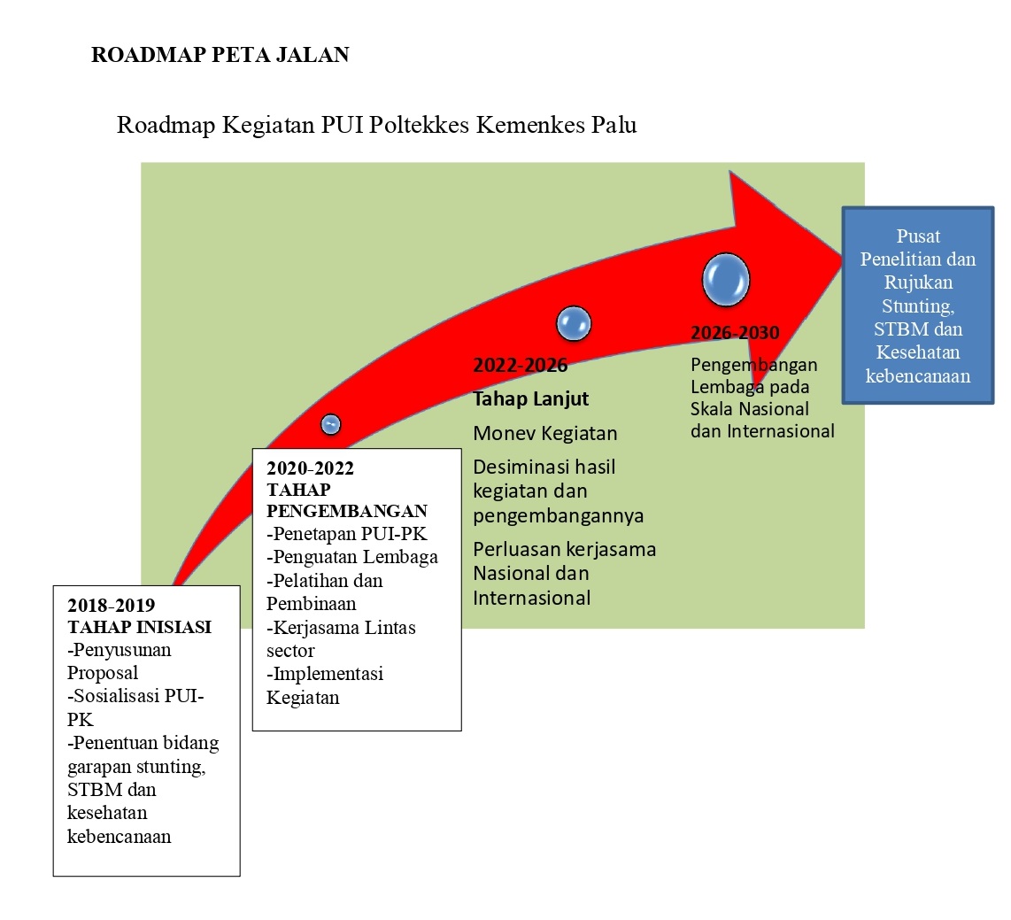 Memberikan peta jalan Pusat Unggulan Ipteks untuk mencapai optimalisasi target keluaran academic excellent melalui kegiatan Pencegahan Pengendalian stunting, STBM dan kesehatan kebencanaan.