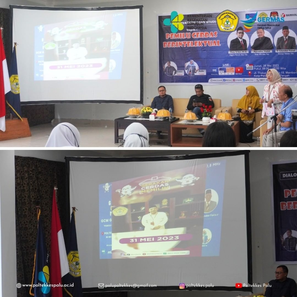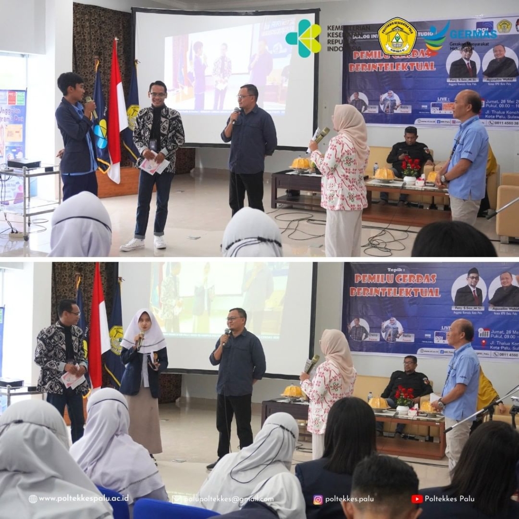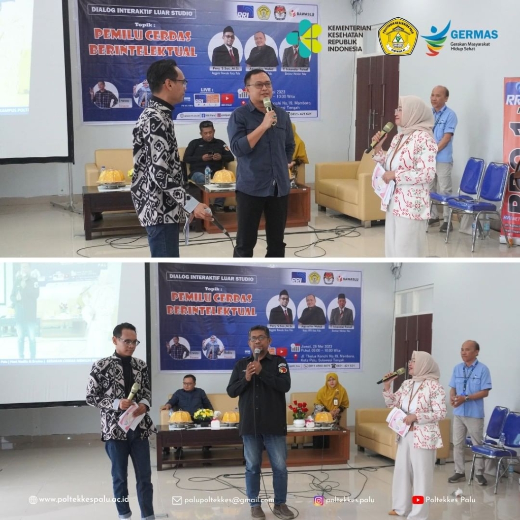 Radio Republik Indonesia (RRI) Sulawesi Tengah melaksanakan Kegiatan Dialog luar Studio di Kampus Poltekkes Kemenkes Palu. Bertempat di ruang pertemuan Rektorat Poltekkes Kemenkes Palu dengan topik “Pemilu Cerdas Intelektual” ,kegiatan yang dihadiri oleh Wakil Direktur III Ibu Sumiaty, SST., MPH bersama dosen serta mahasiswa Polkespalu ini berlangsung meriah. Hadir sebagai narasumber bapak Agusalim Wahid Kepala Komisi Pemilihan Umum (KPU) Kota Palu dan Bapak Fery S.Sos, M.Si anggota Bawaslu Kota Palu.