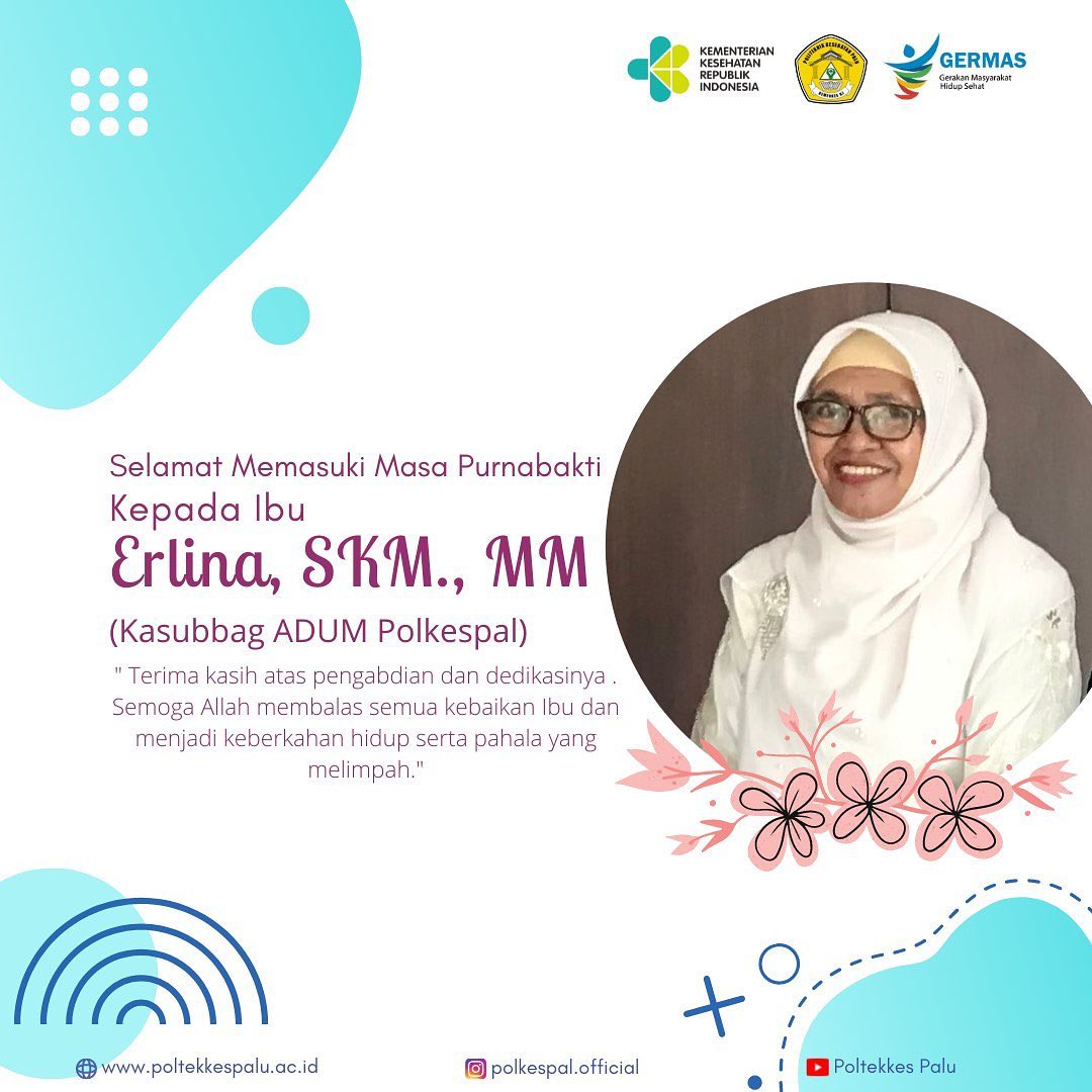 Seluruh Civitas Akademika Poltekkes Kemenkes Palu mengucapkan selamat memasuki masa Purnabakti kepada Ibu Erlina, SKM., MM.